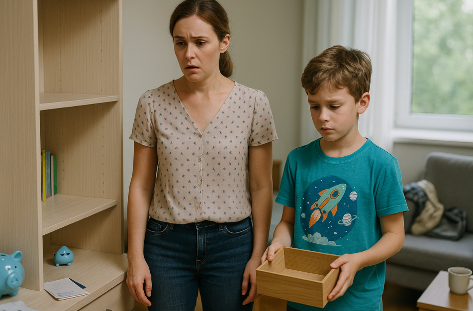 Ирина достала коробку, открыла крышку. Пусто. Ни одной купюры, ни монеты. Женщина нахмурилась. Может, Дима переложил в другое место? Начала обыскивать комнату. Заглянула под кровать, проверила ящики стола, пересмотрела полки. Ничего.