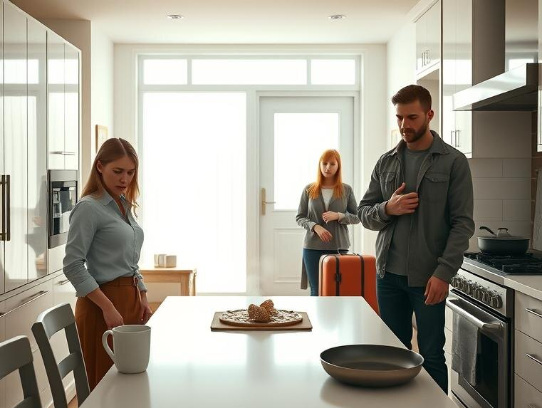 Ольга обернулась от плиты. На сковороде шкворчала картошка, в окне — мартовский свет, холодный, будто специально подчеркивал, что в доме сейчас будет не разговор, а маленький шторм.