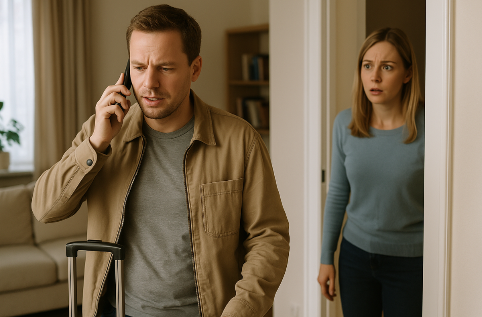 — Дорогая, я уже спешу на рейс, — сказал муж, застёгивая чемодан.