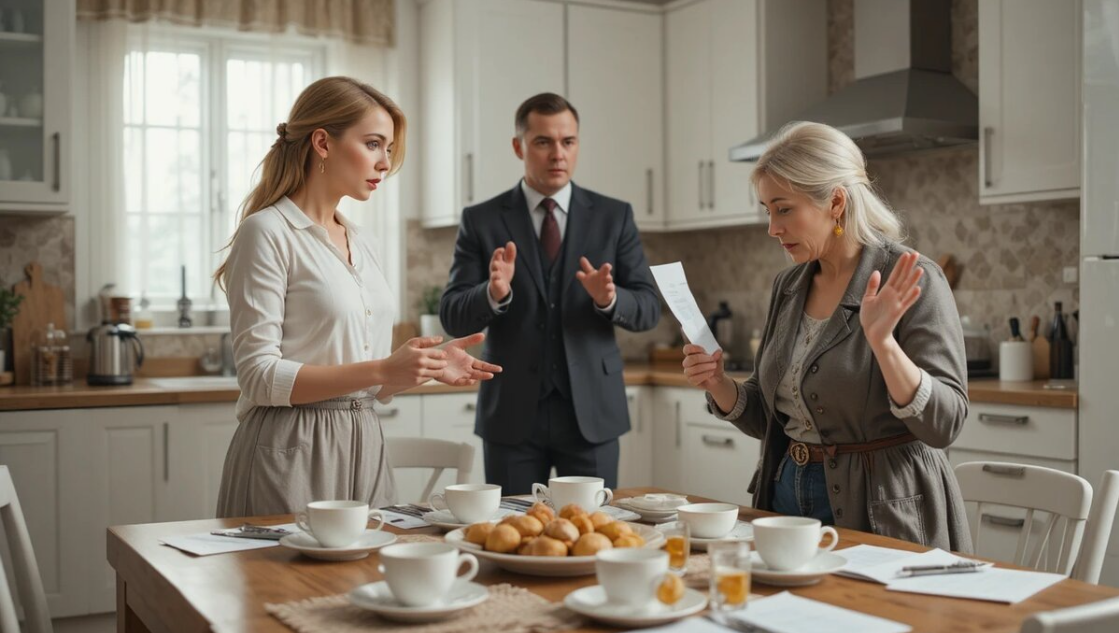 В субботу, когда они с Алексеем уже собирались на рынок за свежими овощами, раздался резкий звонок в дверь. На пороге стояла Татьяна Петровна — при полном параде: причёска, словно высеченная из камня, янтарные серьги отсвечивали зловещим огнем, а в руках – пухлая папка с документами.