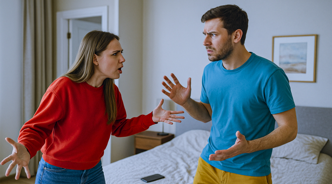 Жена осторожно подошла к спальне. Дверь была приоткрыта. Муж сидел на кровати, сгорбившись, держа телефон у уха. Лицо бледное, на лбу капельки пота.