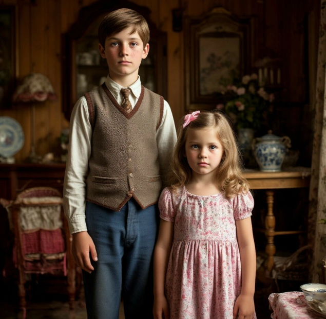 Галя рядом со старшим братом Владом в гостях у бабушки
