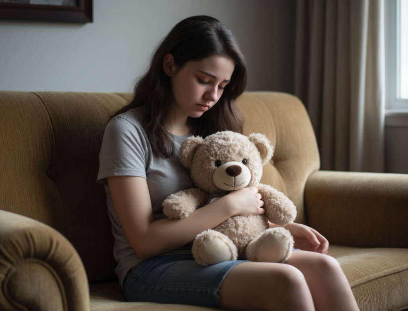 Соня сидела на краю кровати, сгорбившись, и крепко прижимала к груди плюшевую собачку. Игрушка была потрёпанной – видно, что она не раз и не два утешала хозяйку в трудные минуты. Глаза Сони блестели от слёз, голос дрожал, а слова вырывались порывисто, будто она боялась, что их оборвут на полуслове.