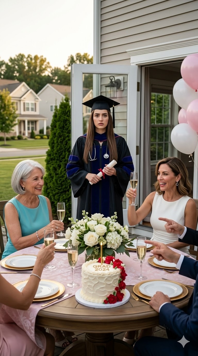 Моя семья пропустила мой выпускной в медицинской школе, чтобы пить шампанское во дворе родителей—и пока они отмечали внезапную помолвку моей сестры, я стояла там в мантии и шапочке, поняла, кем именно являюсь для этой семьи, ушла, сменила фамилию и решила, что они больше никогда не получат ещё один шанс меня забыть.