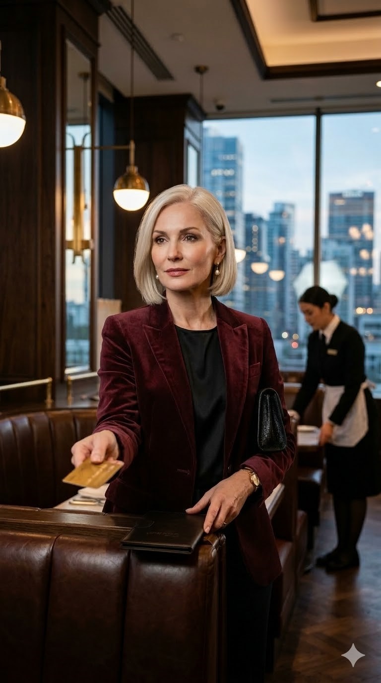 Я разгладила синий пиджак, аккуратно уложила седые волосы и села на два автобуса до центра. Казалось одной из тех летних вечеров в Америке, когда все куда-то спешат, и ты говоришь себе, что тоже едешь к семье. В 17:50 я зашла в светлый вестибюль ресторана — латунь, тихий джаз, едва слышный звон бокалов за закрытыми дверями. Хостес улыбнулась. «Имя брони?»