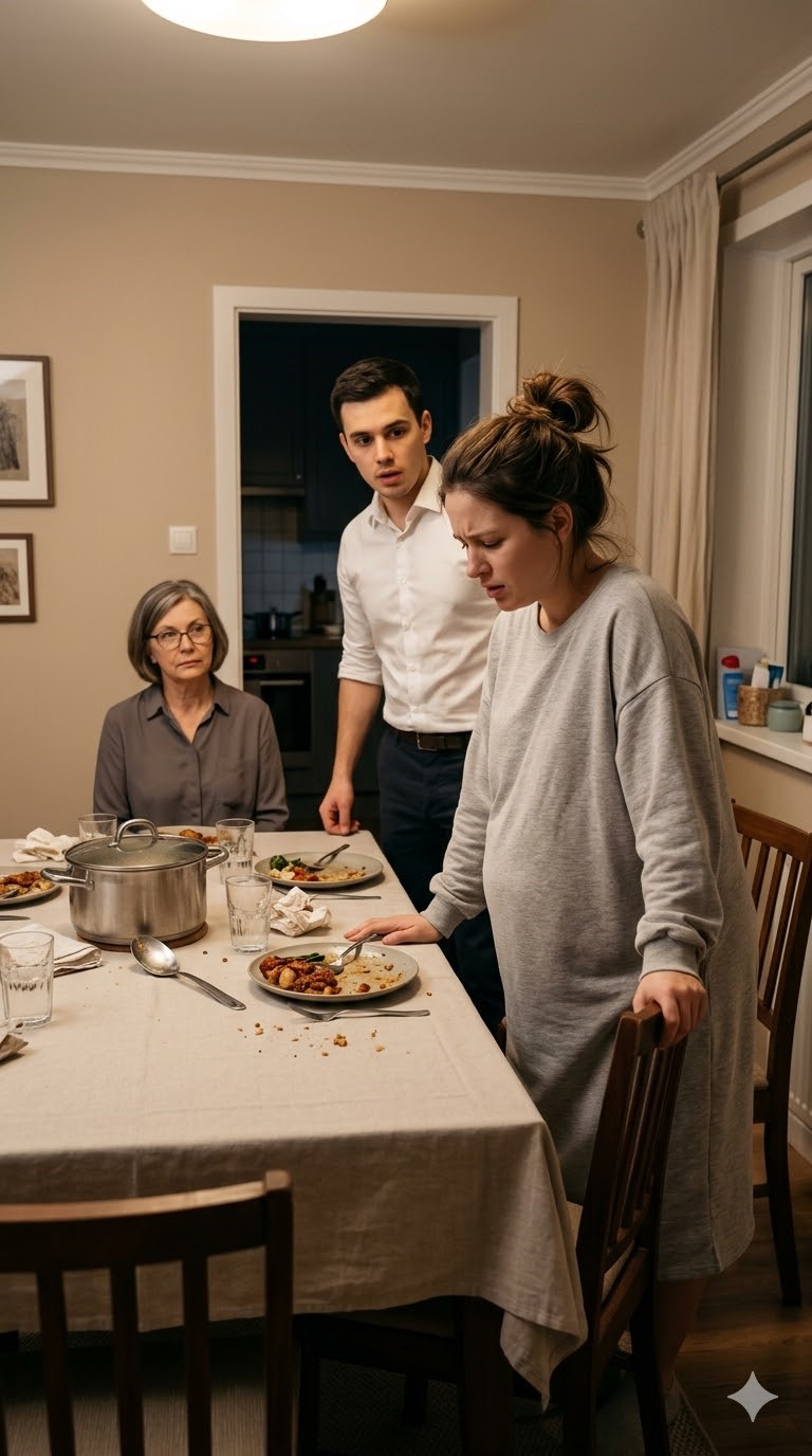 С дрожащими руками и потом, затуманивающим зрение, я вытащила тяжёлую чугунную кастрюлю из духовки. Жара ударила мне в лицо, от чего меня закружило. Я простояла три часа, мое тело — поле битвы между потребностями ребёнка внутри и требованиями мужчины передо мной. Дверной звонок зазвучал ритмично и настойчиво. Родители Трэвиса, Дороти и Джеральд, вошли в квартиру, как разведгруппа во враждебном захвате. Дороти, женщина, чья элегантность была лишь тонкой маской для врождённой жестокости, тут же начала свою обычную ревизию моих неудач.