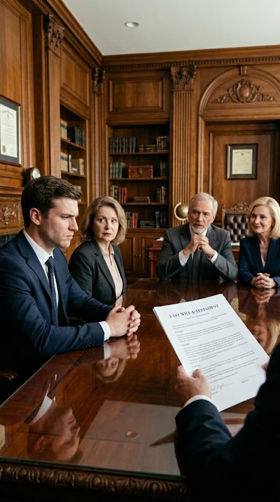 «Весь остаток имущества», — прочла она, голос чётко отражался от деревянных панелей, — «включая ликвидные активы, права на недвижимость, инвестиционные счета, личные вещи и благотворительные назначения, если не указано иное, завещается моему внуку, Оливеру Джеймсу Монтгомери.»